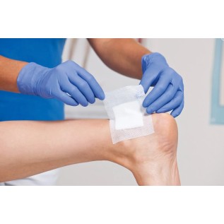 Bande sous forme de rouleau non tissé extensible hypoallergénique.